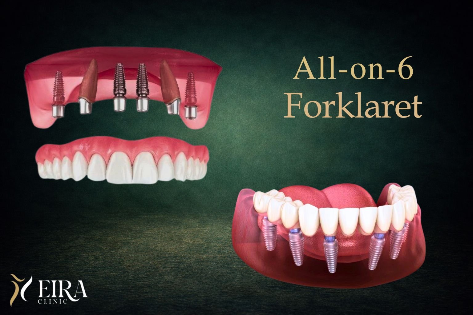 All-on-6 er en fuldbue-teknik med tandimplantater, der bruger seks implantater til at støtte et fast sæt tænder i enten over- eller underkæben.
