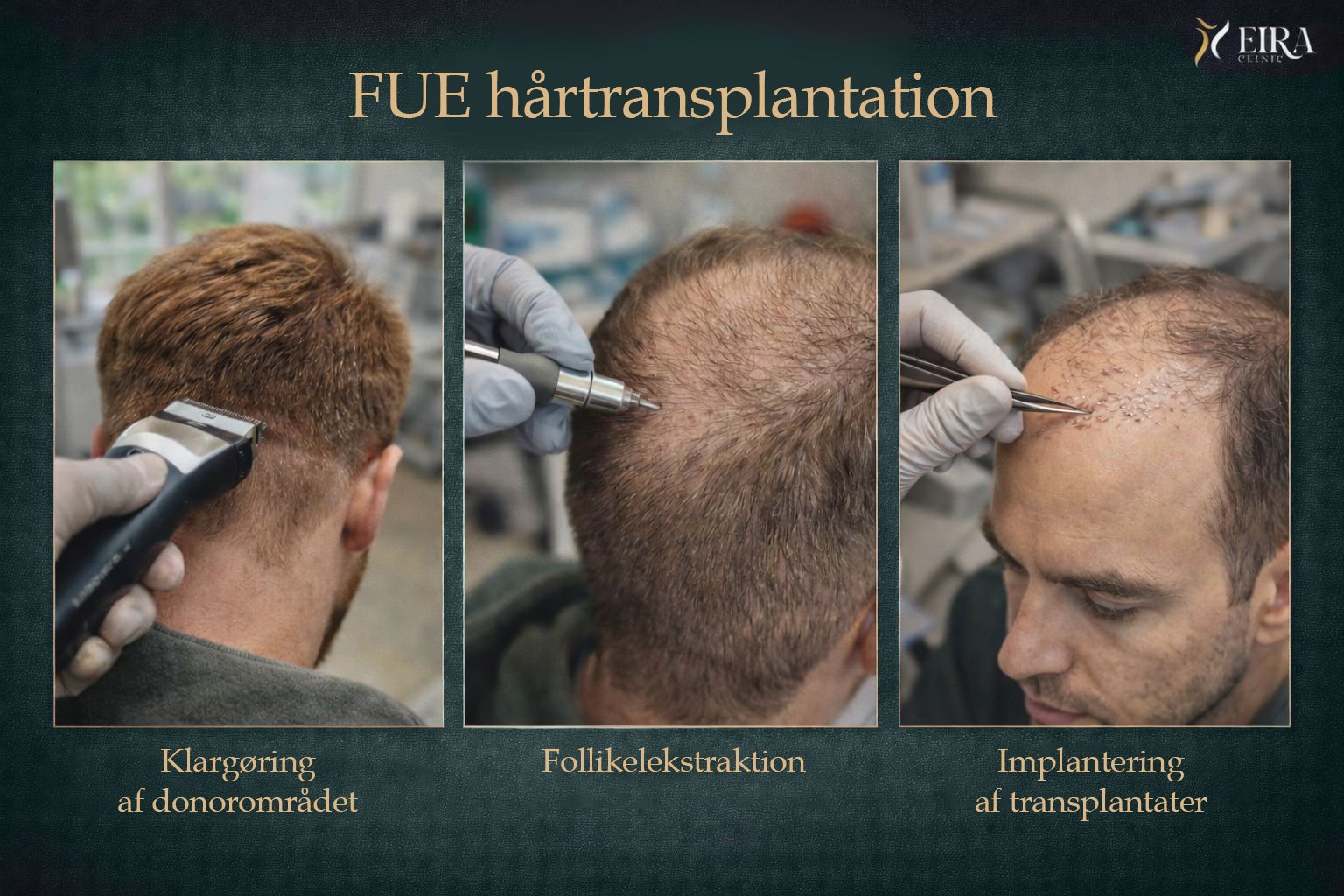 FUE er en hårtransplantationsteknik, hvor individuelle hårfollikler udtages én for én fra donorområdet og implanteres i udtyndede eller skaldede områder.