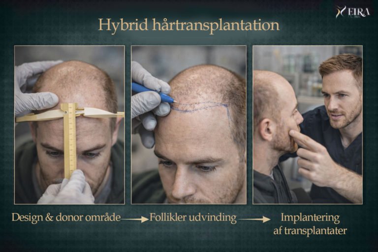 Hver follikel implanteres én for én med præcise vinkler og retninger for at efterligne naturlig vækst.