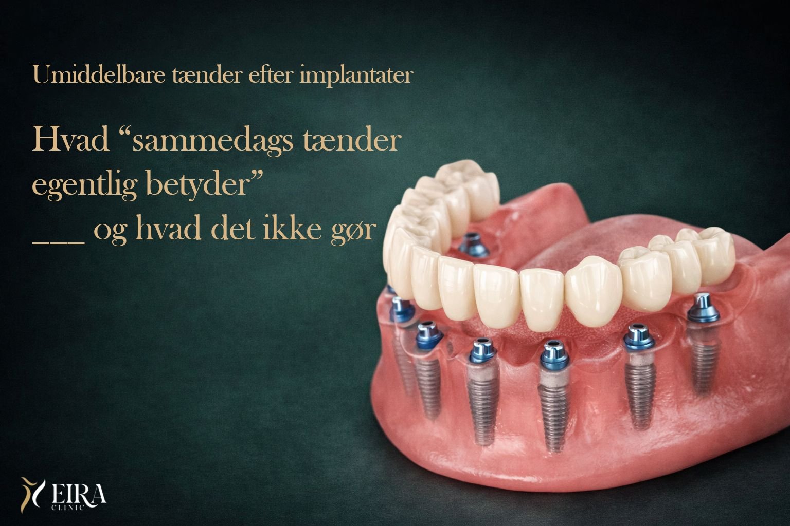 Umiddelbare tænder henviser til placeringen af en midlertidig fast protese kort efter indsættelse af tandimplantater — ofte samme dag eller inden for 24 timer.