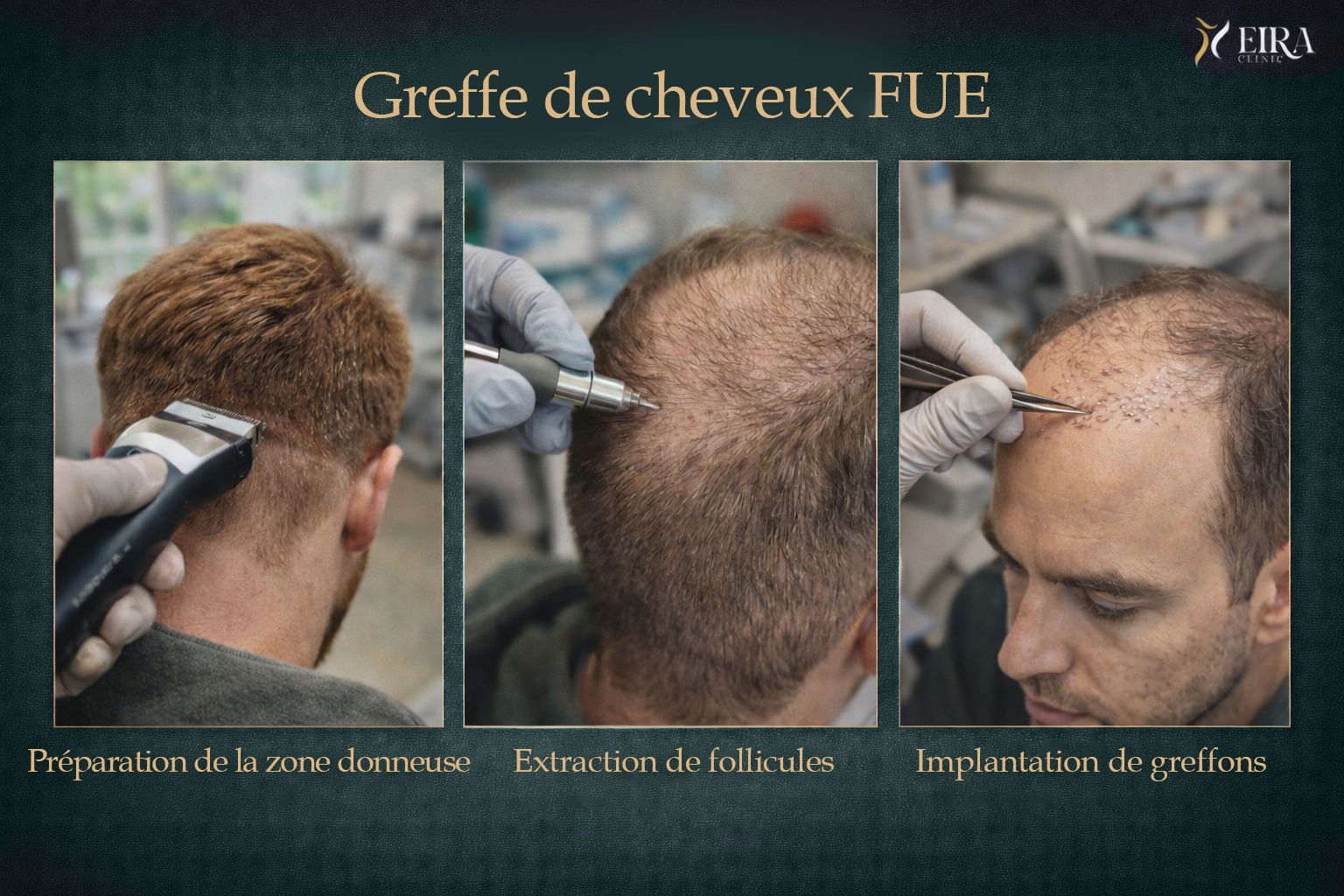 La FUE est une technique de greffe capillaire dans laquelle les follicules pileux individuels sont extraits un par un de la zone donneuse puis implantés dans les zones clairsemées ou chauves.