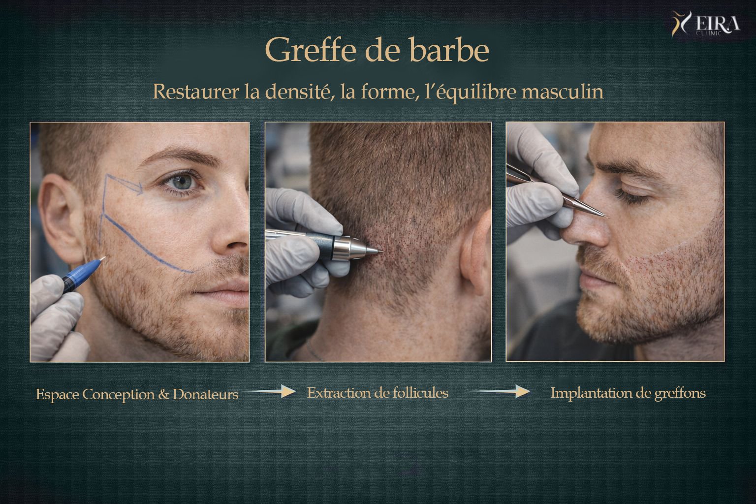 Une greffe de barbe est une procédure au cours de laquelle des follicules pileux sains sont prélevés dans une zone donneuse (généralement l’arrière du cuir chevelu) puis implantés dans les zones de la barbe qui manquent de densité ou de définition.