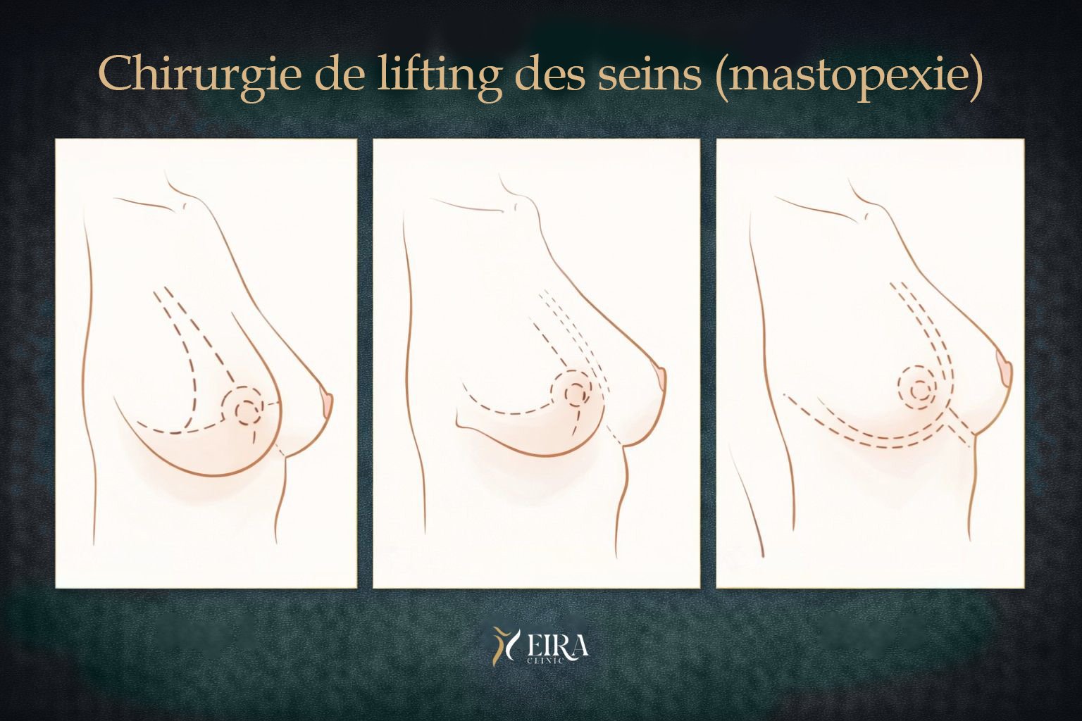 Un lifting mammaire (mastopexie) est une intervention chirurgicale qui :