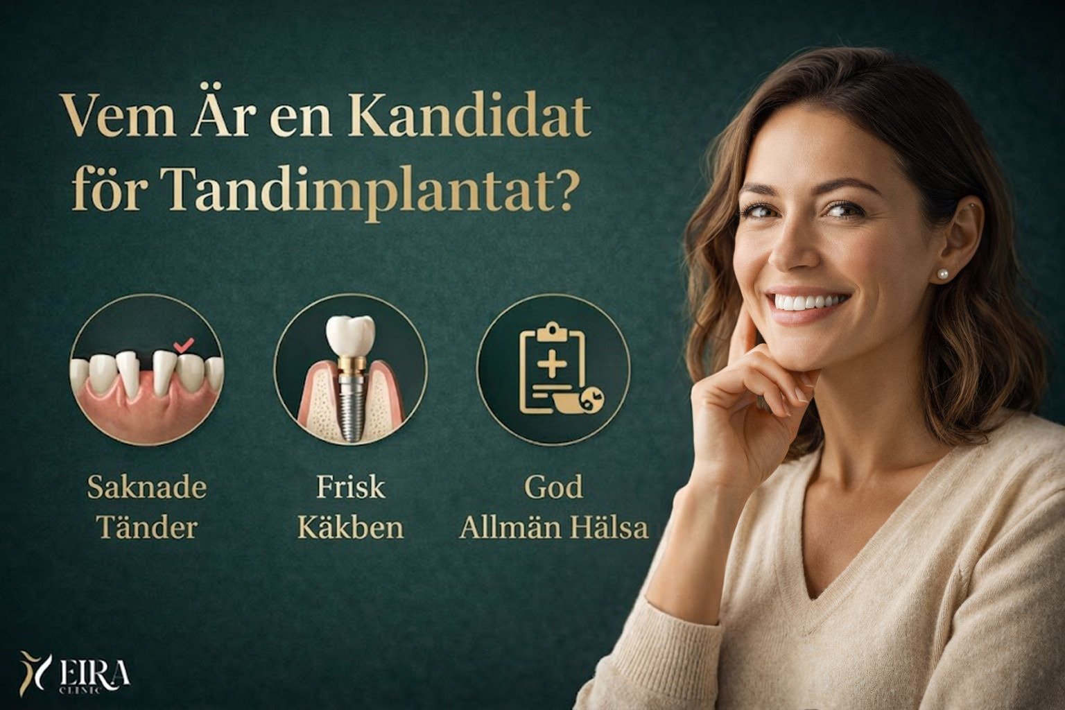 Lämplighet för tandimplantat avgörs genom en medicinsk och odontologisk bedömning, inte genom en enkel visuell undersökning.